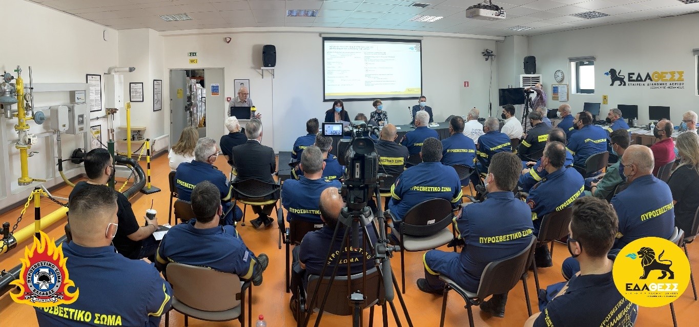 Από τη πλευρά του ο Αρχιπύραρχος, Διοικητής της Περιφερειακής Διοίκησης Πυροσβεστικών Υπηρεσιών Θεσσαλίας, κ. Ευάγγελος Φαλάρας ανέφερε ότι για να αντιμετωπισθεί επιτυχώς μια κατάσταση, χρειάζονται τα μέσα και η γνώση, η οποία λαμβάνεται από την ΕΔΑ ΘΕΣΣ που διαθέτει υψηλή και εξειδικευμένη τεχνογνωσία. Μαζί με τη γνώση απαιτείται πρόληψη και αυτοματισμός, ιδιαίτερα σε συνθήκες όπου ο χρόνος απόκρισης είναι ελάχιστος. Σε αυτό το πλαίσιο, ευχαρίστησε θερμά την Εταιρεία για την οργάνωση ενός τόσο σημαντικού προγράμματος εκπαίδευσης.